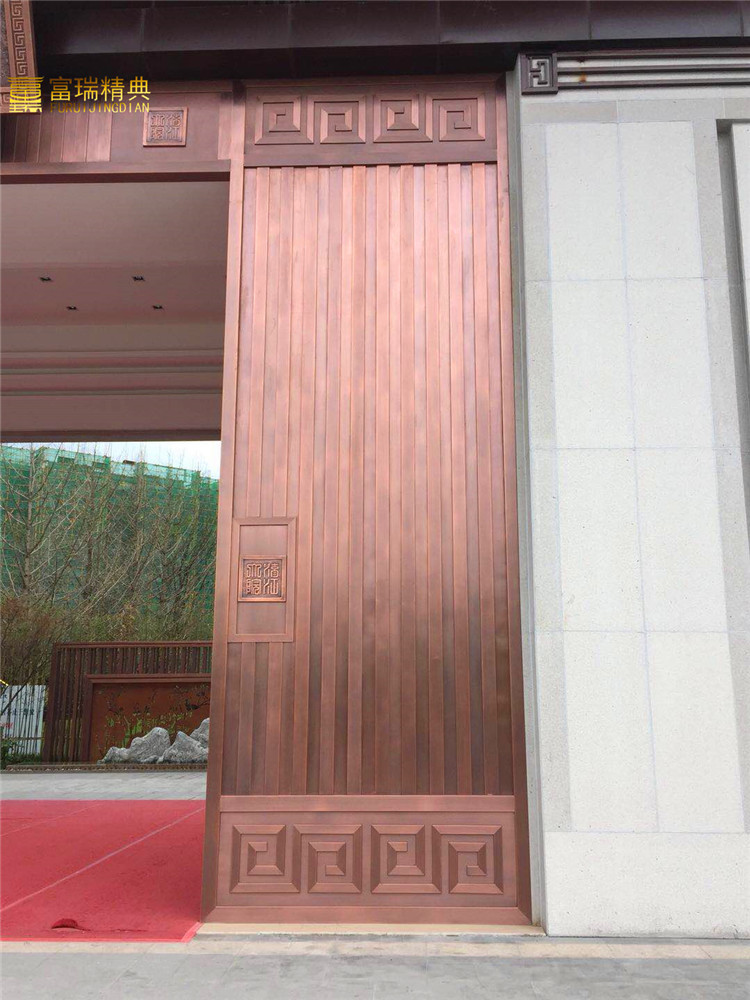 材质:紫铜门、铜格栅、铜屏风、铜牌匾