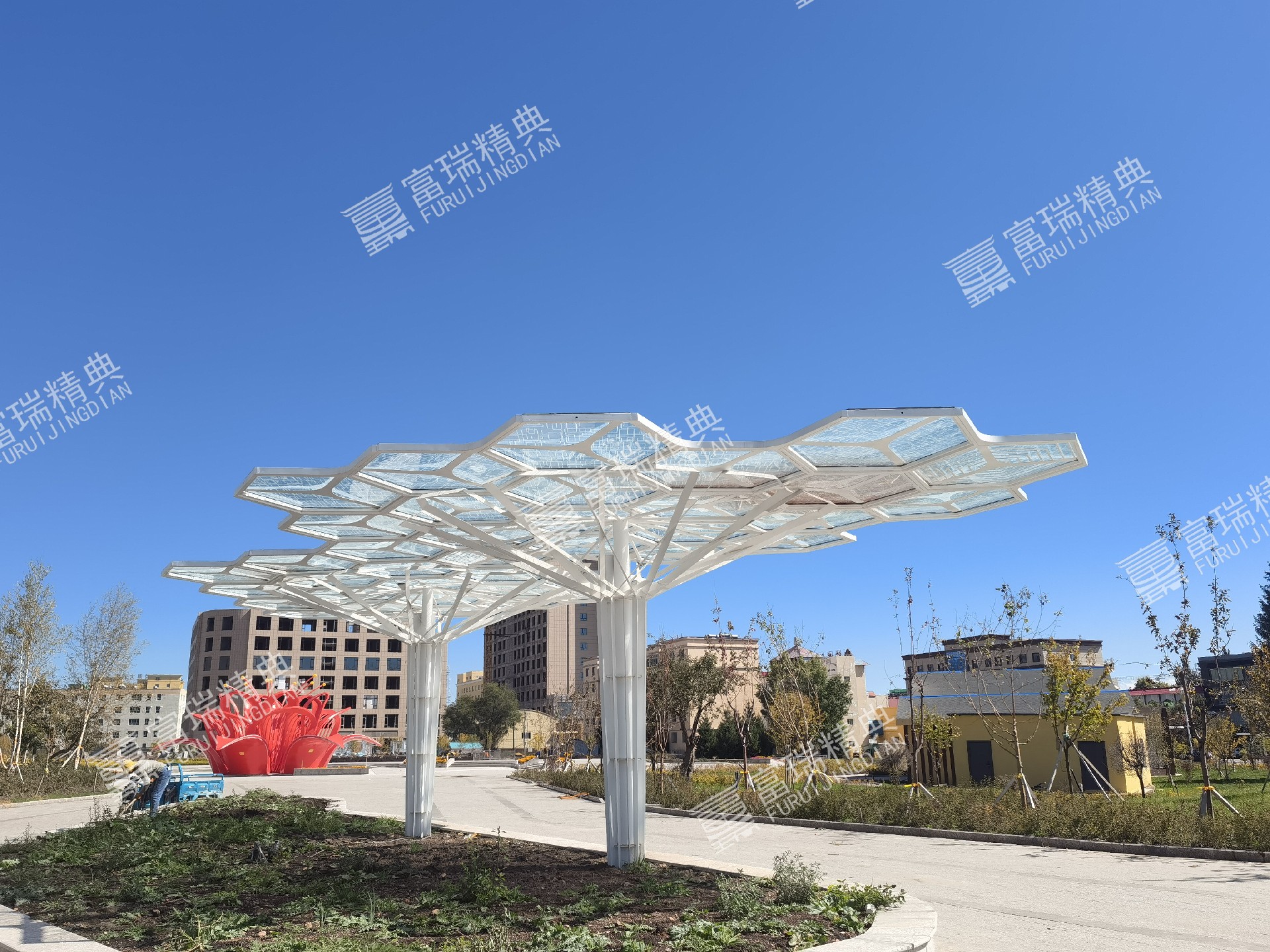 项目简介:新疆昭苏石榴籽公园云朵廊架