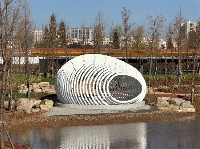 项目简介:云南宣威东河公园不锈钢廊架构筑物