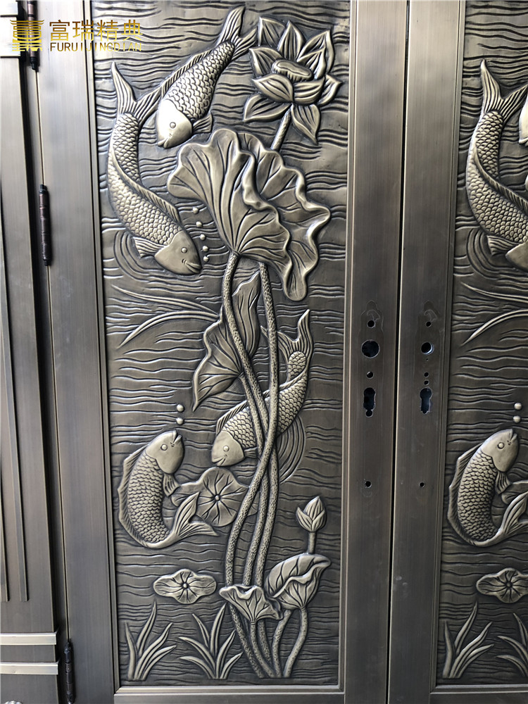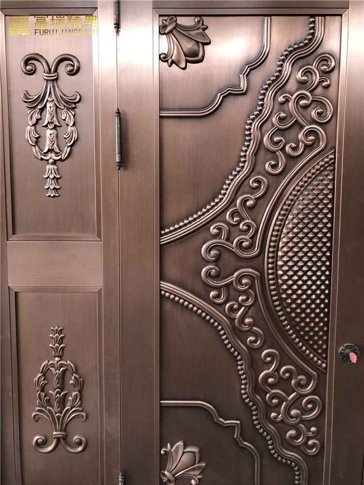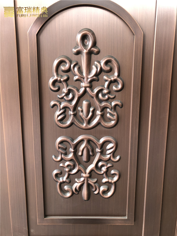 铜门能够拥有不同的靓丽造型,华丽的外观,除了铜板制作的工艺、油漆、拉丝、组装之外,还有一个最主要的因素就是铜门表面上的不同,铜花图案装饰,它在铜门的表面上是必不可少的。
