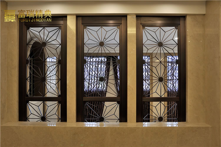 材质:玻璃紫铜门、铜花格