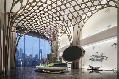 项目简介:重庆千厮门售楼部室内金属装饰