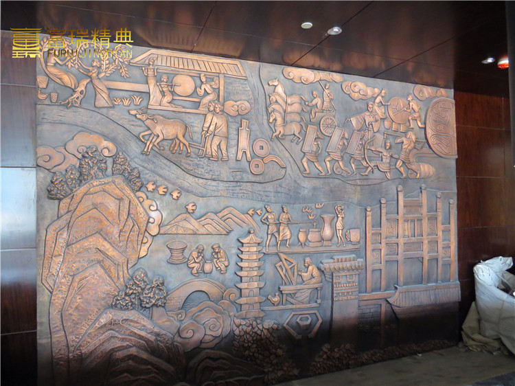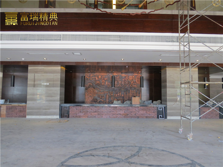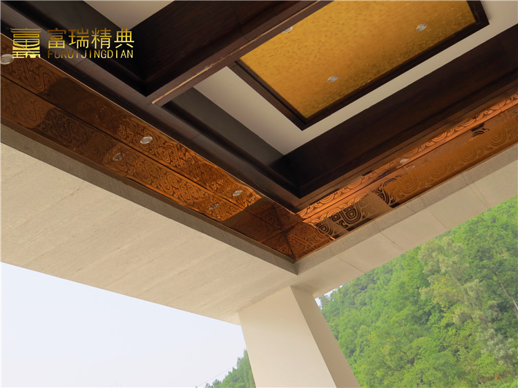 材质:玻璃铜门、铜吊顶、锻铜浮雕、铜蚀刻