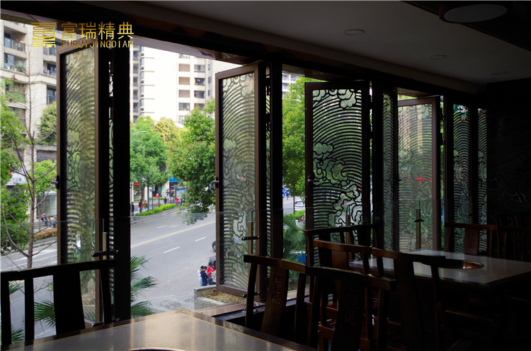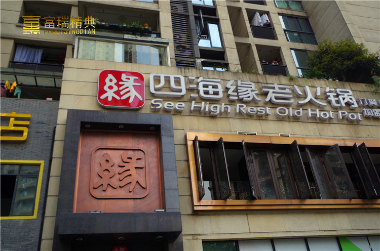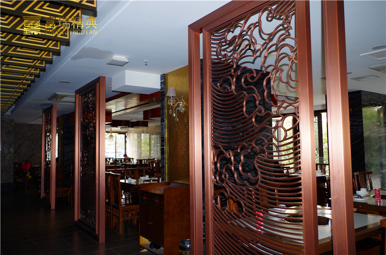 项目简介:重庆四海源火锅店铜门及金属装饰