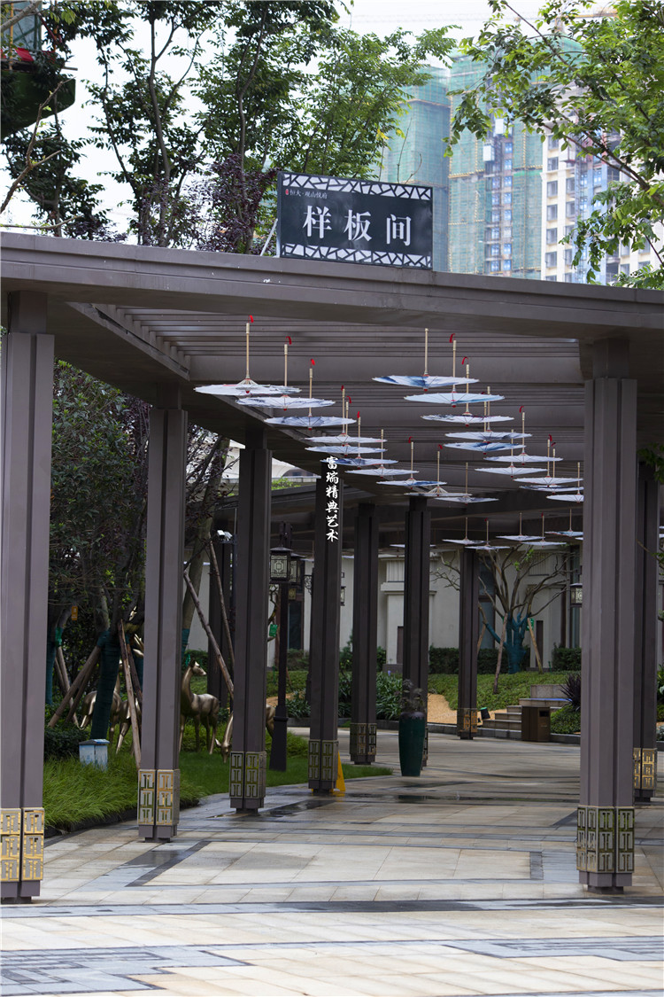 项目简介:贵州贵阳恒大观山悦府凉亭廊架、中式门楼、金属装饰及景观小品