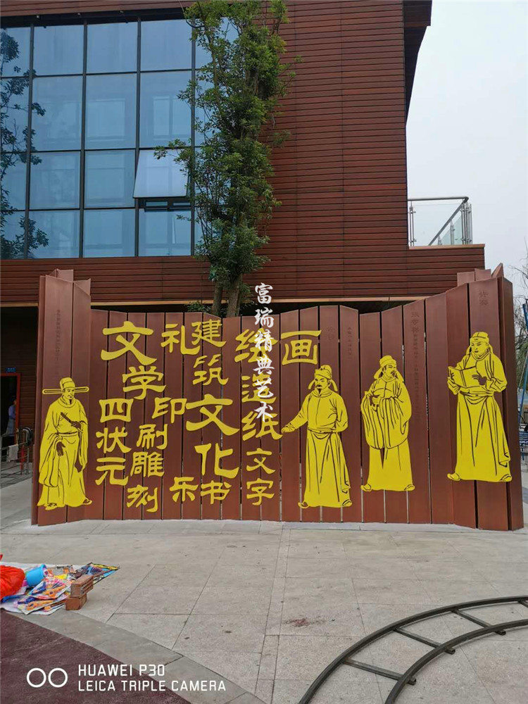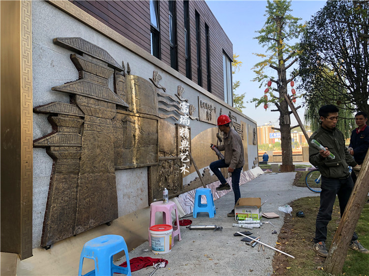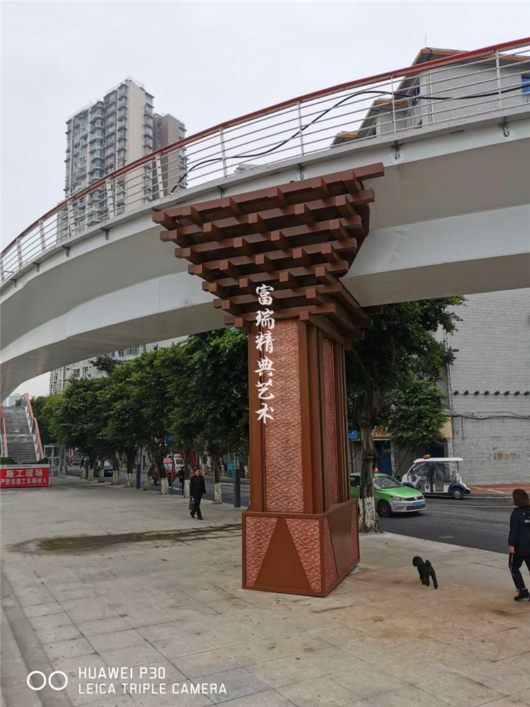 材质:铜包柱、铝板画、不锈钢景观小品