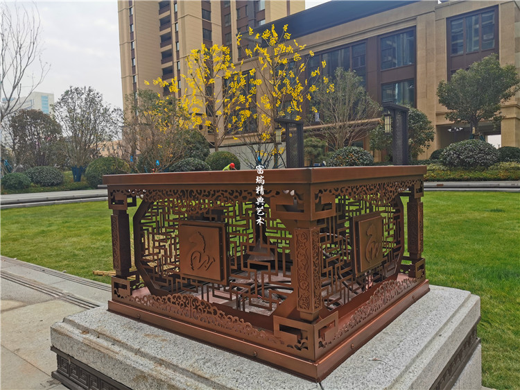 材质:不锈钢景墙、铜灯、铜门