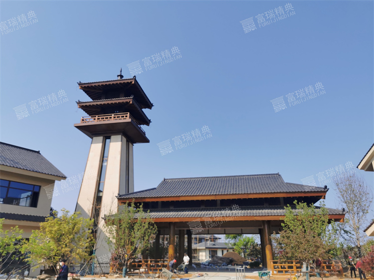 材质:铝斗拱、铝瓦、铝格栅、铝栏杆
