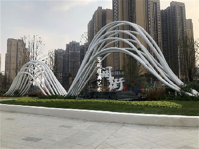 项目简介:四川宜宾阳光·天空之城售楼部风动景墙